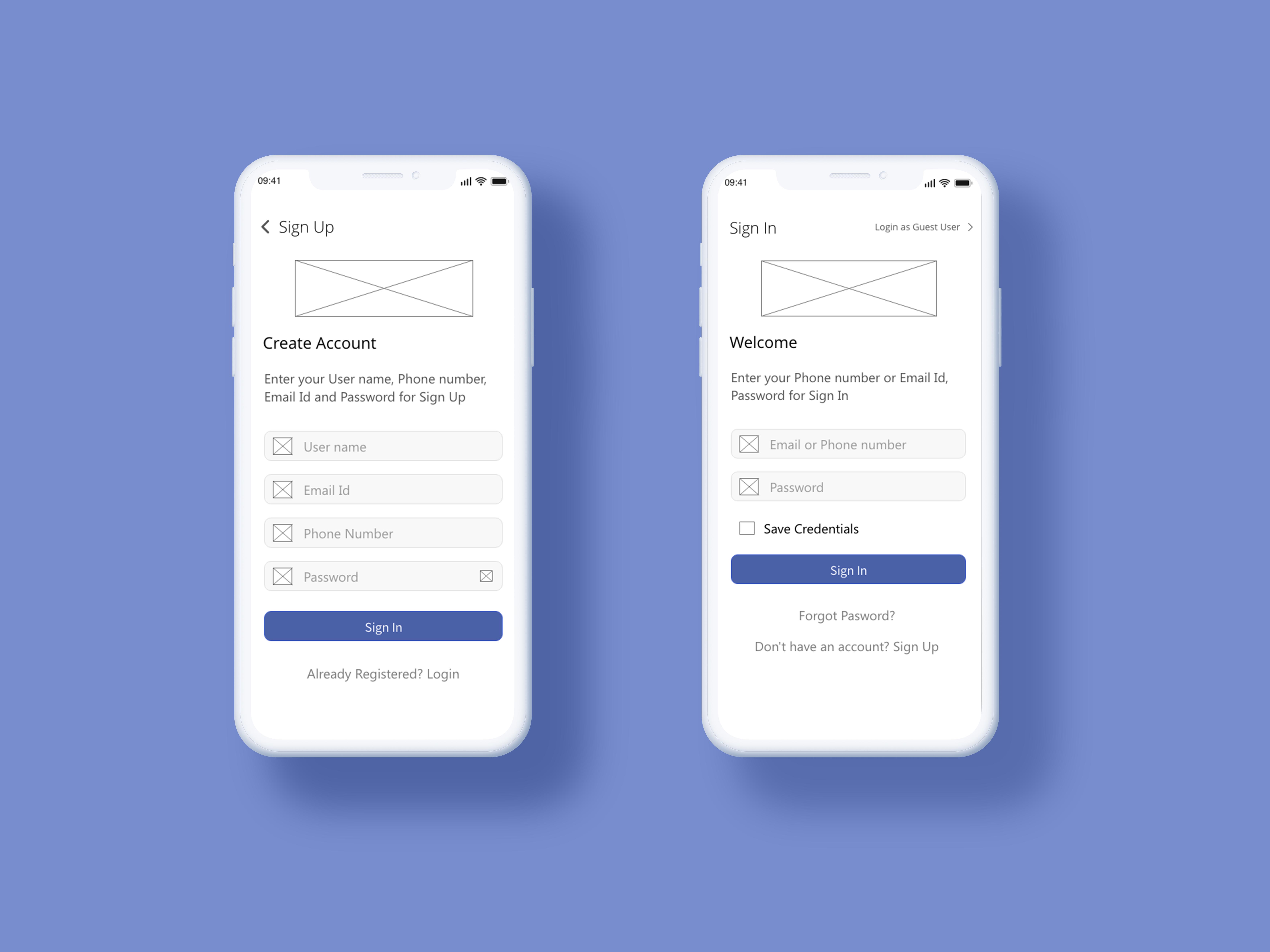 Sign-up Wireframes